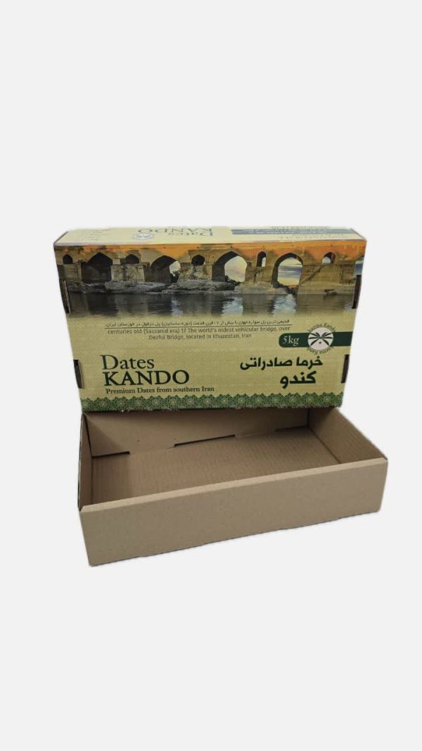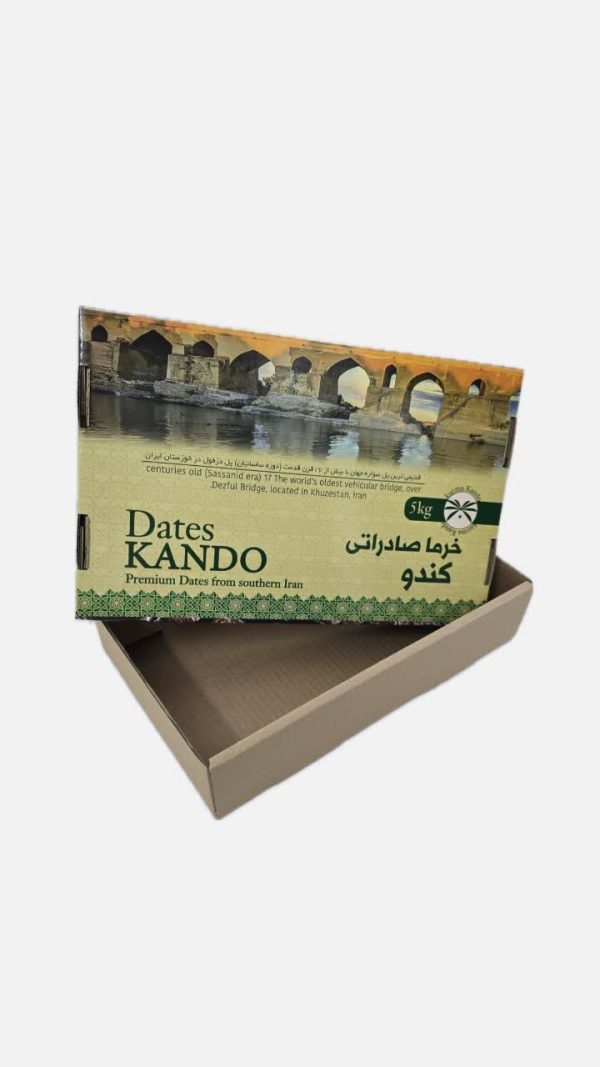 - اطلاعات محصول: روی کارتن باید اطلاعات مهمی مانند نوع خرما، وزن، کشور مبدا و اطلاعات تغذیهای به صورت واضح درج شود.
